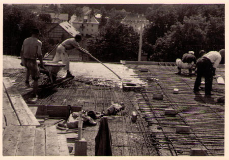 Ein größerer Lagerplatz wurde in den sechziger Jahren am "Burgerweiher" angekauft und der Betrieb dorthin verlegt. Der Bau von Eigenheimen, landwirtschaftlichen Nutz- und Wohngebäuden sowie allgemeinen Maurerarbeiten florierte und so wuchs damals nach kurzer Zeit die Anzahl der Mitarbeiter auf 25 Beschäftigte an.